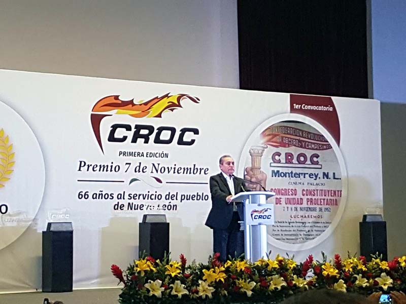 El legislador federal, señaló lo anterior en la clausura de la ceremonia del 66 Aniversario de la CROC de Nuevo León, que se llevó a cabo en las instalaciones de la Expo de Guadalupe ante la presencia de senadores, diputados federales y locales, así como alcaldes de los diversos municipios de la entidad.