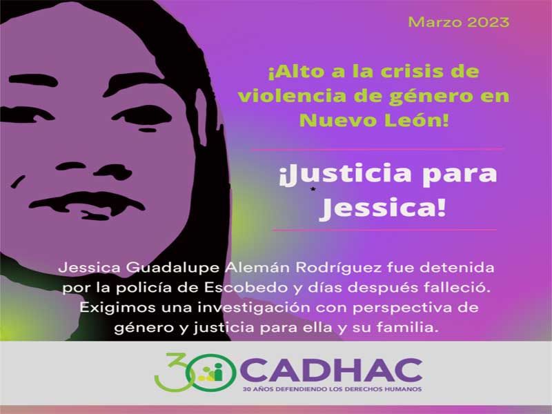 Expresamos nuestra solidaridad con la familia y seres queridos de Jessica Guadalupe Alemán Rodríguez en este lamentable momento de dolor. En CADHAC exigimos justicia para Jessica y para todas las mujeres que han sido víctimas de la violencia de género en Nuevo León.