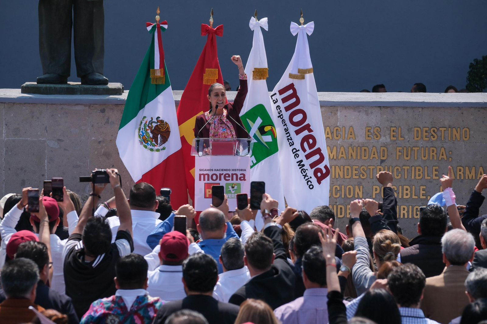 Claudia Sheinbaum se registró como candidata presidencial de Morena, PT y PVEM en medio de muestras de apoyo al grito de “la doctora al frente, la esperanza sí se siente” y carteles con leyendas que decían “amor con amor se paga” por parte de militantes; pero también fue arropada por los principales liderazgos de la Cuarta Transformación como Ricardo Monreal, Marcelo Ebrard, Gerardo Fernández Noroña, Manuel Velasco, demostrando que la unidad es la base de la 4T.