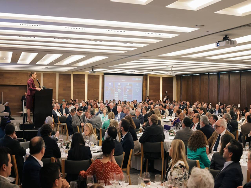 En el encuentro Claudia Sheinbaum presentó su Proyecto de Nación y visión del desarrollo económico del país, que implica la planeación para la redistribución de empresas con base en vocaciones territoriales y condiciones de cada región del país.