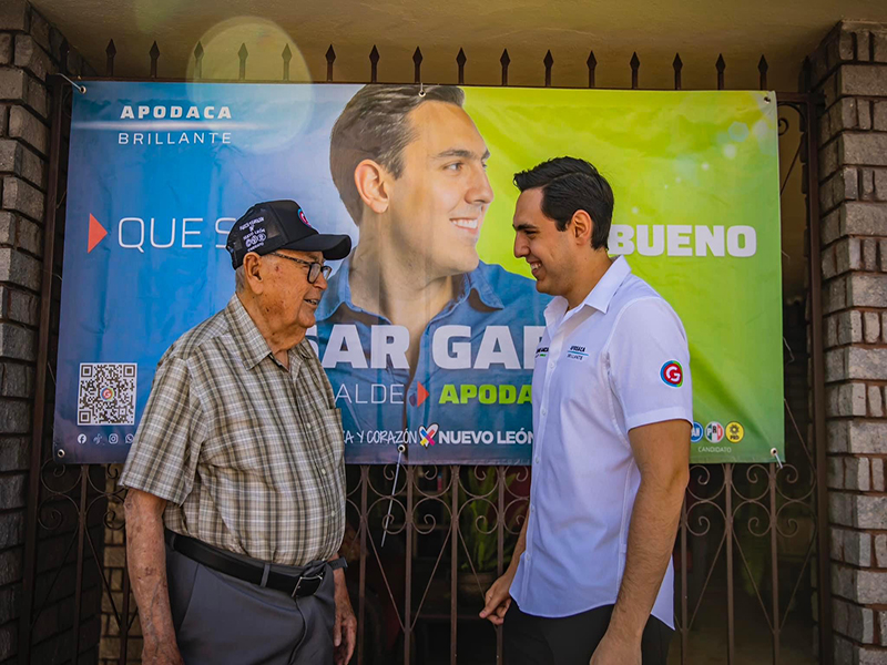 Garza Arredondo, candidato de la coalición integrada por PRI, PAN y PRD, inició su campaña con la visita a su abuelo paterno César Garza, con quien se comprometió a poner en alto el nombre de su Ciudad (Apodaca) y el de su familia.