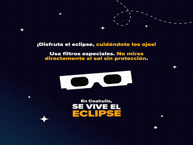 Saltillo, Coahuila de Zaragoza.- Este próximo lunes 8 de abril Coahuila estará en los ojos del mundo al ser nuestra entidad, y específicamente la ciudad de Torreón, el mejor lugar para poder observar el Eclipse Total de Sol, desde donde la NASA hará una transmisión oficial del fenómeno, misma que tendrá una audiencia estimada de 100 millones de personas.