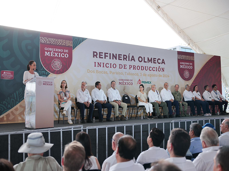 “No aumentarán, en términos reales, los precios de ningún combustible ni de la electricidad, durante nuestro gobierno”, afirmó la virtual Presidenta electa en el inicio de la producción de la Refinería Dos Bocas “Olmeca”